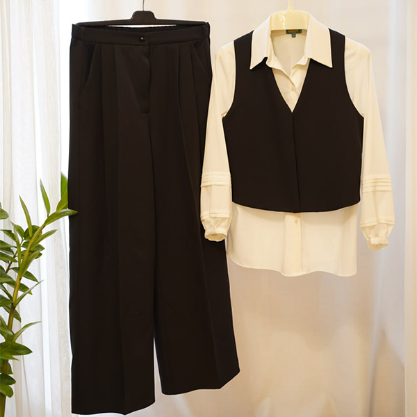 • شلوار راسته گشاد دو پیلی، جیب دار